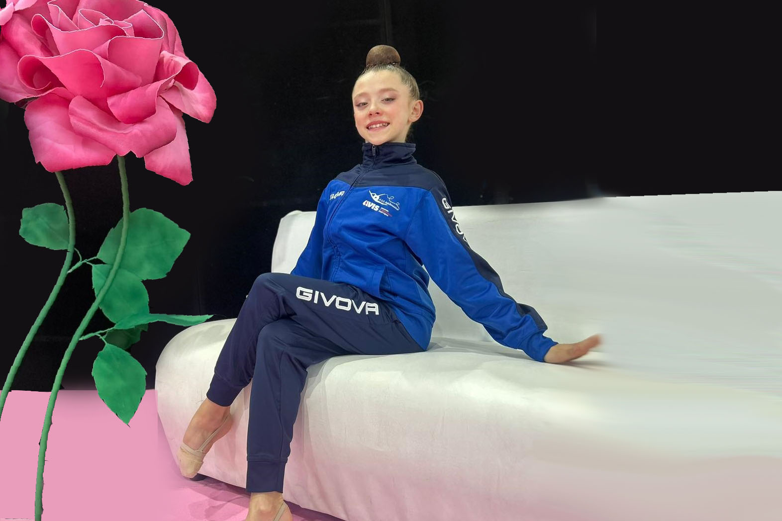 Quest’anno la partenza era più alta, Beatrice, con ArteGinnastica, ha iniziato l’accademia dove si allena tutti i giorni dal lunedì al venerdì dalle 8.30 alle 16.00 e per 3 ore anche al sabato, se non ci sono gare e in più è inserita al CAT, il Centro Addestrativo Territoriale Regionale della Liguria, quindi arriva a Chieti con uno staff tecnico determinato ad accompagnare la propria atleta fino alla fine e a vederla salire sul podio.